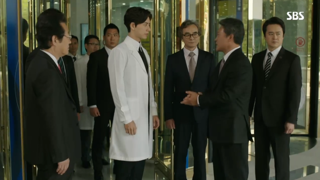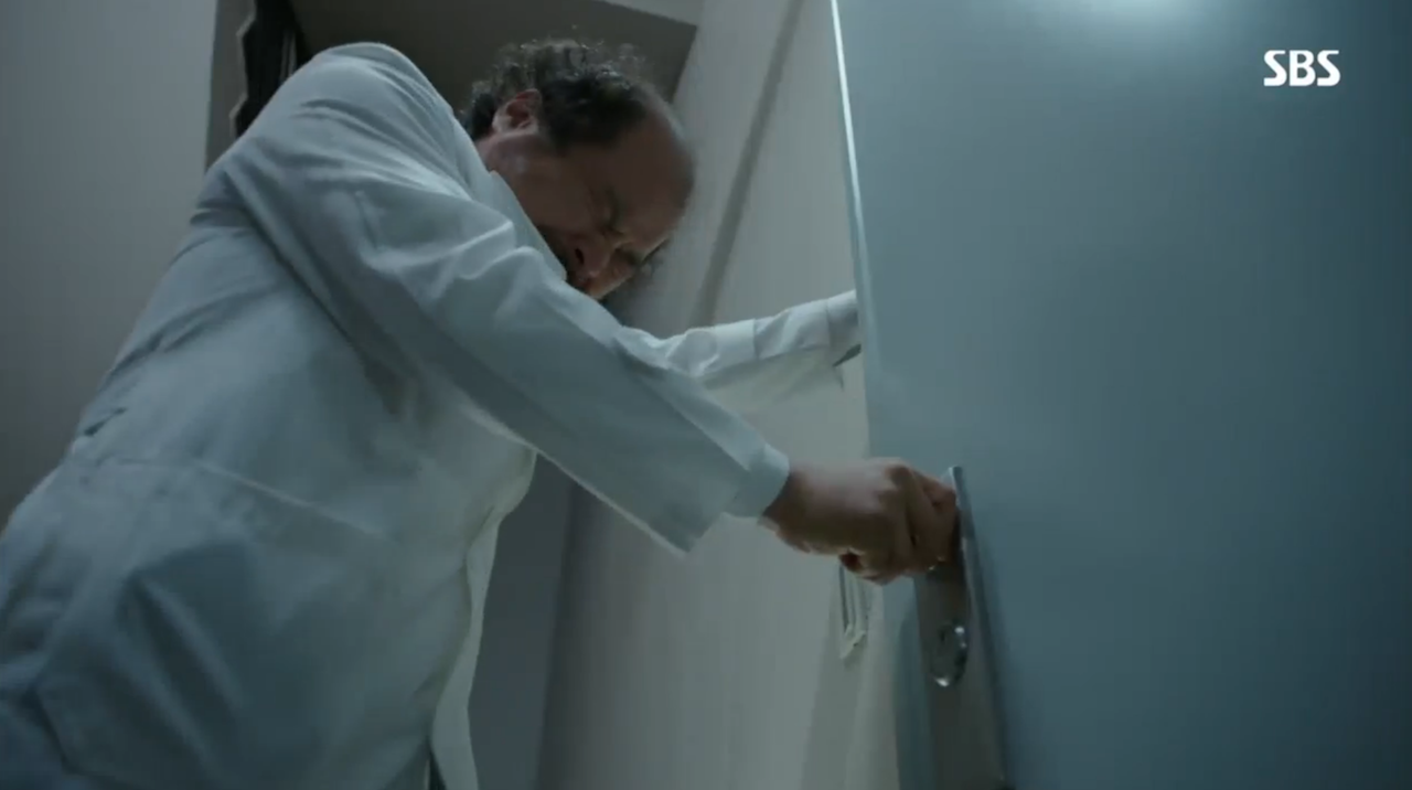At the start of the episode, Hoon and the Prime Minister come face to face for the first time since Hoon’s pre-North Korean childhood. Hoon plays it cool in front of the other doctors, but once the Prime Minster is alone in the bathroom, Hoon locks him in and lets his anger loose.