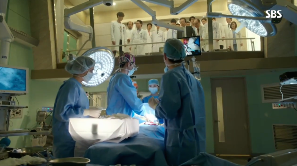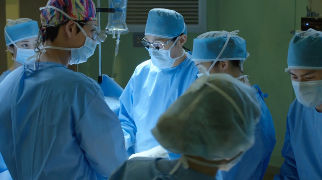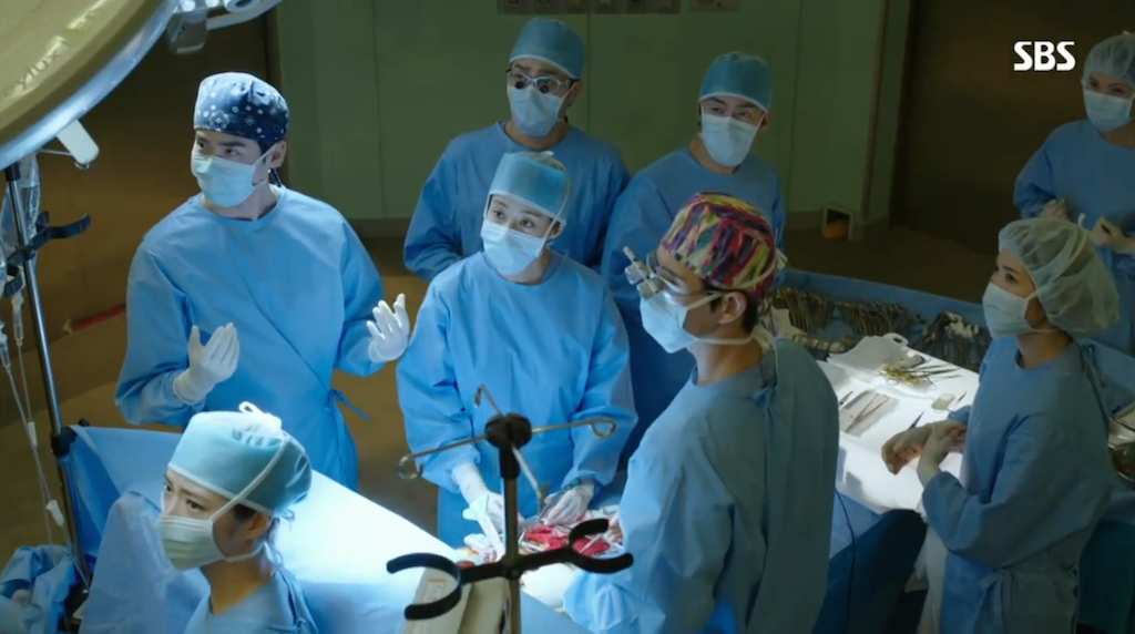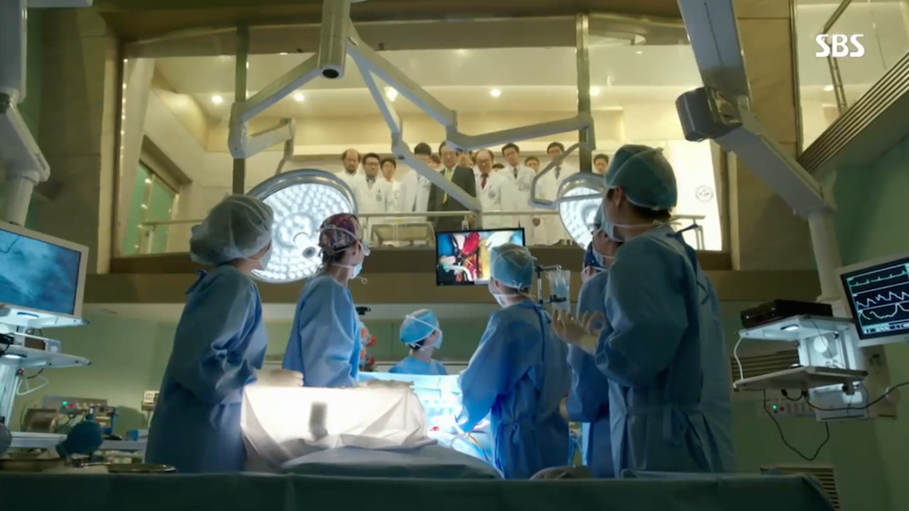 Just as it looks like the patient will die, Hoon walks into the operating room ready to help. Jae Joon acknowledges his presence and Hoon takes his place across from Jae Joon at the operating table.